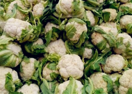 六、及时盖花,适时收获。当小花球形成后,可采取向内折叶的办法,及时细致的盖好花球,花球充分长大、洁白,质地致密,表面周正,边缘尚未散开时,为采收时期。