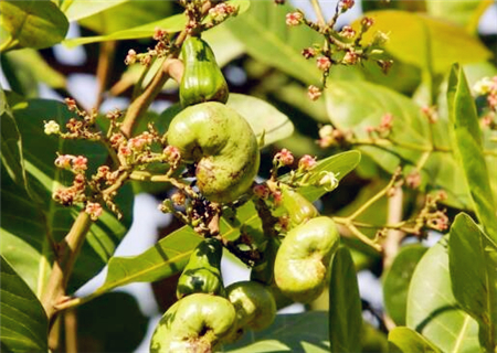腰果树虽然耐瘠薄,抗干旱,但栽培实践证明,自然状态喜爱生长的腰果树几乎没有产量。成龄果树再施肥后产量会成倍提高。从施肥种类看,n、p、k混施增产效果最好。其次单施p,再次是n、p混施。较高水平的n能延长花期,而较高水平的p和k则缩短花期。每年每株施n600克、p200克、k200克能显著增加单株坚果树,提高总产量及出仁率。