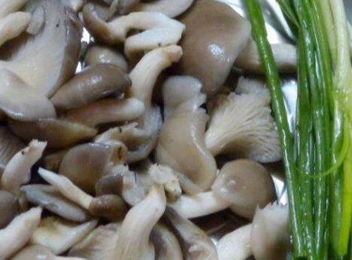1、大蒜压扁切碎,凤尾菇清洗干净。