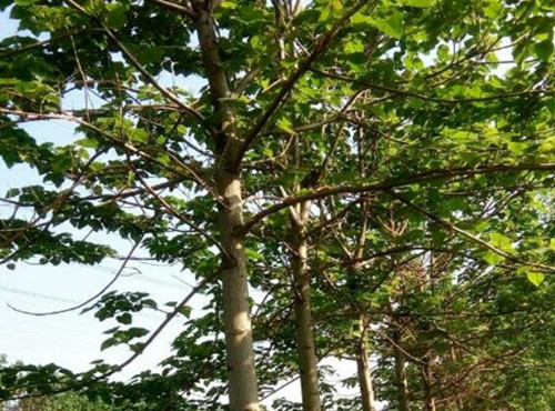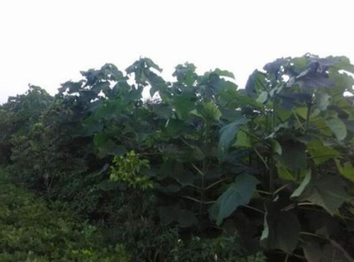 3、造林:四旁造林要求挖大穴、施足基肥,山地造林要求带状梯田整地,松土层厚度为50~70厘米,并施足基肥,以达到造林当年快速生长的目的。以林为主的造林密度为5米×5米,每667平方米(1亩)栽26株;林粮并重的造林密度为5米×10米,每667平方米栽13株;以粮为主的造林密度为4米×30米,每公顷栽6株。