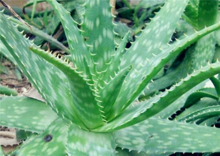 中国芦荟别称:中华芦荟,特点枝叶宽大,浅绿色叶子上有斑点。