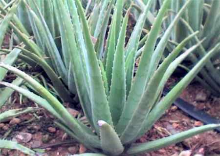 (三)施肥为了促进植株的生长,要及时施肥,以腐熟有机肥为主结合化肥。每年施化肥3-4次,每次每亩施腐熟有机肥4000-5000kg,混合尿素6kg,过磷酸钙50kg。采收芦荟种植2-3年后即可收获。当芦荟叶片生长旺盛期,将中、下部生长完全,长20-3Ocm以上的叶片,分批割下。