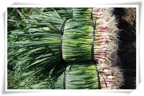 3、太仓白蒜:蒜头直径3-5厘米、每头7-8瓣。7-8月上市,蒜头亩产2000斤左右。