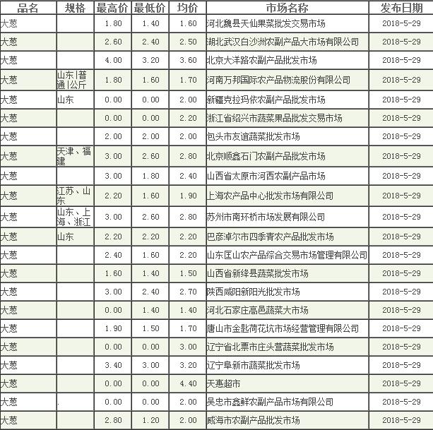 2018年5月29日今日全国大葱价格