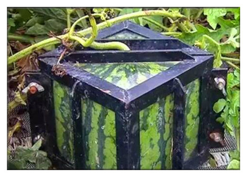 方形西瓜,最初由日本培育。只是由于瓜形好,易运输,方便存储,节省空间,存储时间长,而受到欢迎。它并不是转基因西瓜,只是人们在培育时,方法是在西瓜上套上一个将其放在一个透明的模具,随着西瓜不断长大套用不同规格的方箱,将西瓜的形状塑造成方形,所以成熟时它就长成了方形了。