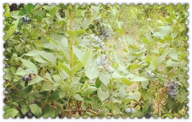 蓝莓为灌木,每丛有结果枝条25-30条,第2年开花结果,但产量较小,第3年有适当的产量,第5年进入丰产期,其寿命50年,平均单株产量3-6公斤,平均单果重2克,一般每亩定植300株左右,平均产量1500-2000公斤。