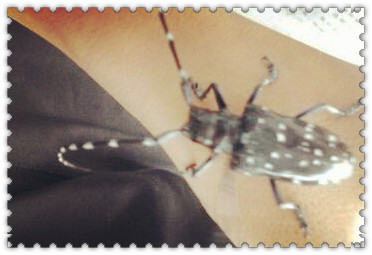 一、星天牛又有银星天牛之称,幼虫俗称“哈虫”。我国南北方均有分布。成虫5--7月啃食枝条皮层,幼虫为蛀干害虫,全年危害,通常1年发生1代。初孵化幼虫在枝条外皮内啃食,随生长蛀入枝干内啃食木质部,危害较大,造成蛀洞,枝条停止生长,叶色变暗或变黄,严重时枝干折断枯死。成虫黑色,具白色斑点,有光泽,虫体长19-,-21毫米,触角长于体长,有节。幼虫淡黄色或白色,体长38-x-60毫米。