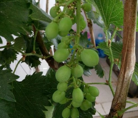 当葡萄长到一段时间,藤蔓蔓延,建议搭架子或将其缠绕的室外,便于通风透光、减少病害和地面辐射对叶、果的灼伤。或者对葡萄藤进行修剪。生长期尽量不要修剪,以免将芽剪掉影响葡萄生长。修剪一般在冬季 落叶后进行。长梢留8-12节、中梢留5-7节、短梢留3-1节。夏季萌芽时也可以适当修剪,花前疏除过多的花序、留大去小、留壮去弱。