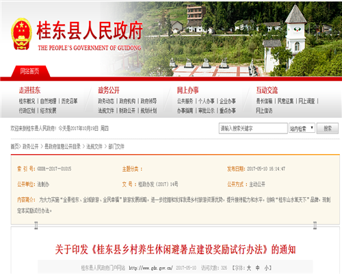为大力实施“全景桂东、全域旅游、全民幸福”旅游发展战略,进一步挖掘和发挥我县乡村旅游资源优势,提升接待能力和水平,创响“桂东山水氧天下”品牌,现制定本奖励试行办法。