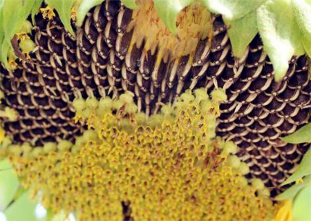 叶面喷肥与辅助授粉及打杈:在向日葵灌浆期每亩用磷酸二氢钾100—150g或多元微肥200g兑水30公斤进行喷施,时间以下午6时后或无风雨的阴天,也可在傍晚进行。