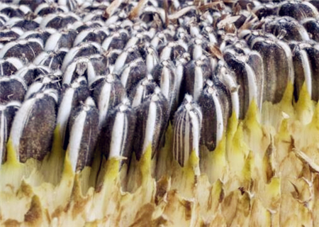 当全田油葵花盘背面呈现黄白色、茎秆变黄,中上部叶片退绿变黄,果皮呈现本品种固有颜色和斑纹,即可进行人工收获;当植株茎秆变黄,叶片枯萎下垂或脱落,花盘黄褐色,舌状花凋萎脱落,果皮坚硬时即可进行机械收获,作到颗粒归仓。获后立即摊开晾晒,勤翻动、防着雨,晴天晾晒2—3天即可脱粒,脱粒后立即摊开籽粒晾晒,防止发热霉变,以保商品质量。